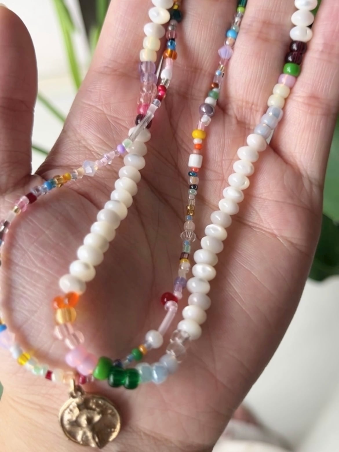 material:シェルビーズ、シードビーズ
