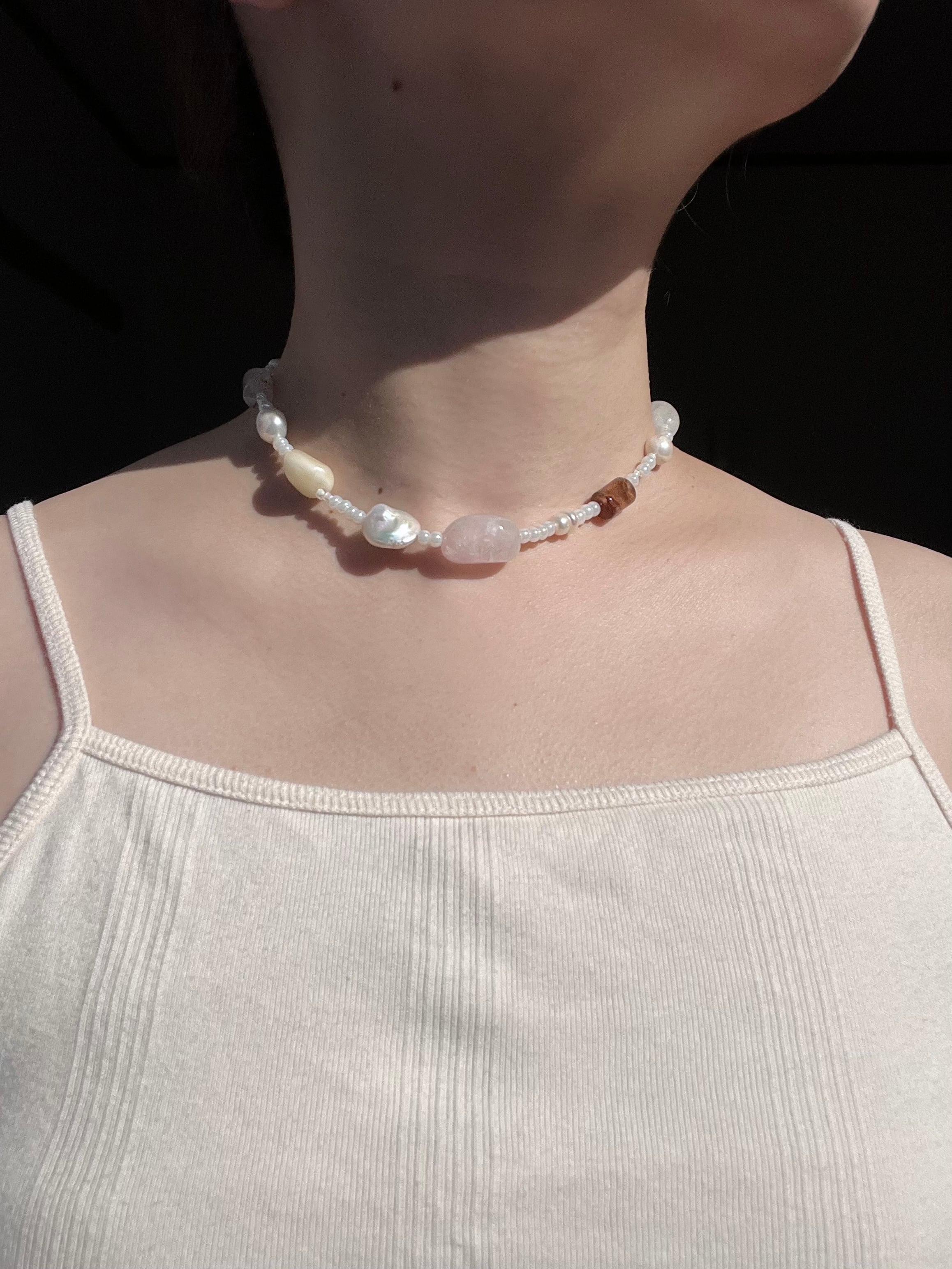 ビーズチョーカー/ビーズネックレス/ビーズアクセサリー/パールネックレス
